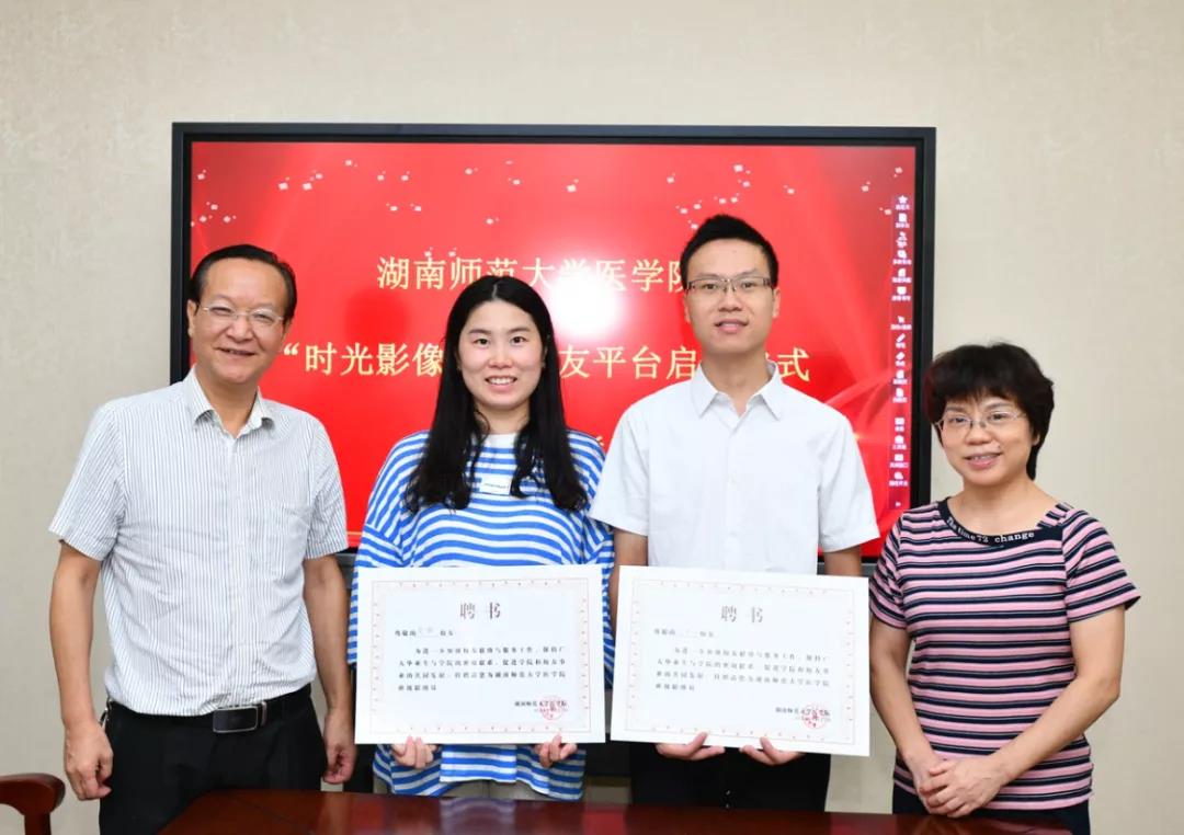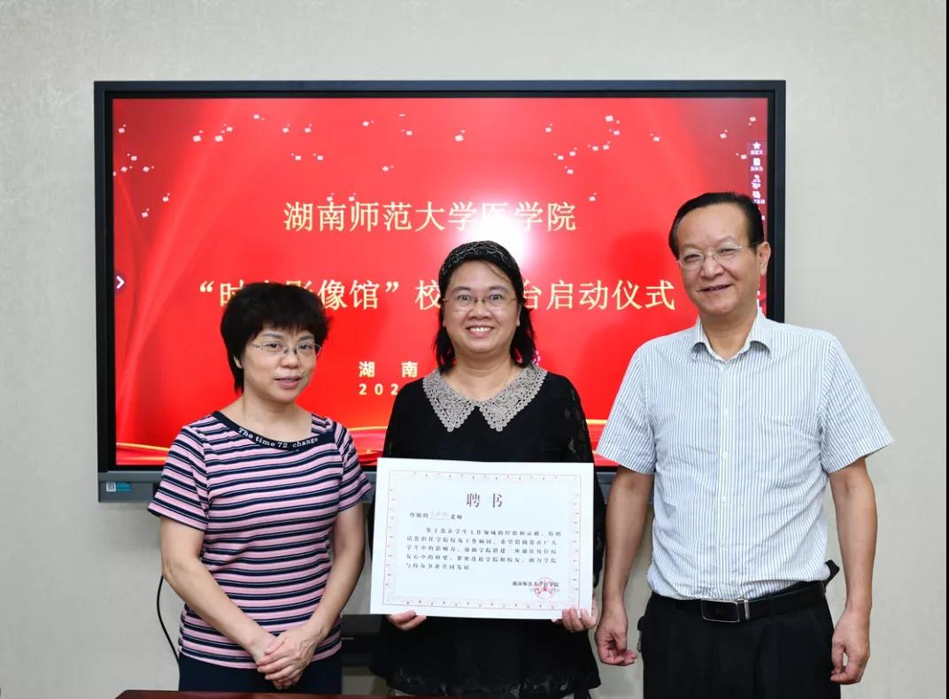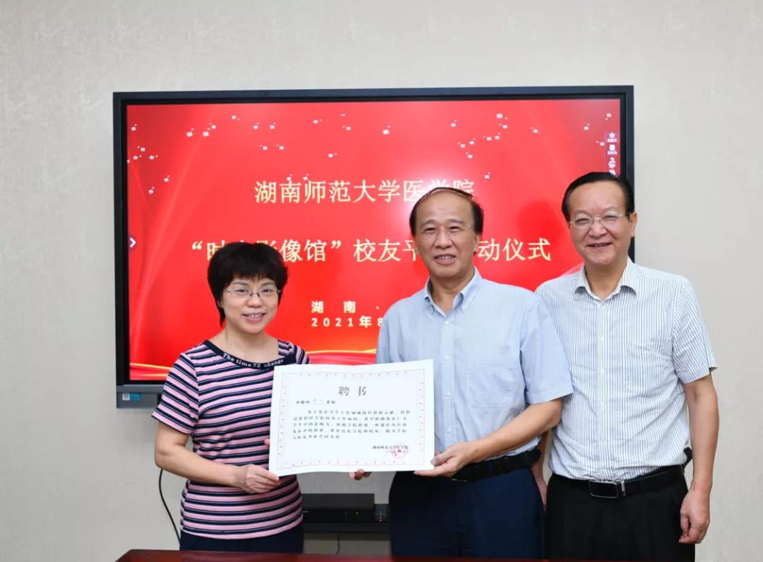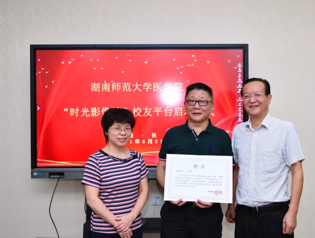 8月27日上午,我院在办公楼三楼会议室举行我院“时光影像馆”校友平台启动大会暨校友顾问聘书颁发仪式。我院校友会副会长李学荣(原党委办主任)、王先酉(原外国语学院党委书记)、谭伟(原美术学院党委书记),我院党委书记鄢朝晖、副院长张坚松、邓文艳、党委副书记陈松、院长助理叶湘漓、行政办主任向延娥、党委办主任吴鹏、辅导员肖琳琳、校友兼专干颜鹤立、邓光祁、郭思思,校医管办综合管理科科长张卫宁,校友会校友平台服务商同学路网络科技有限公司卿建华、王坤、张青等参加会议。会议由陈松主持。