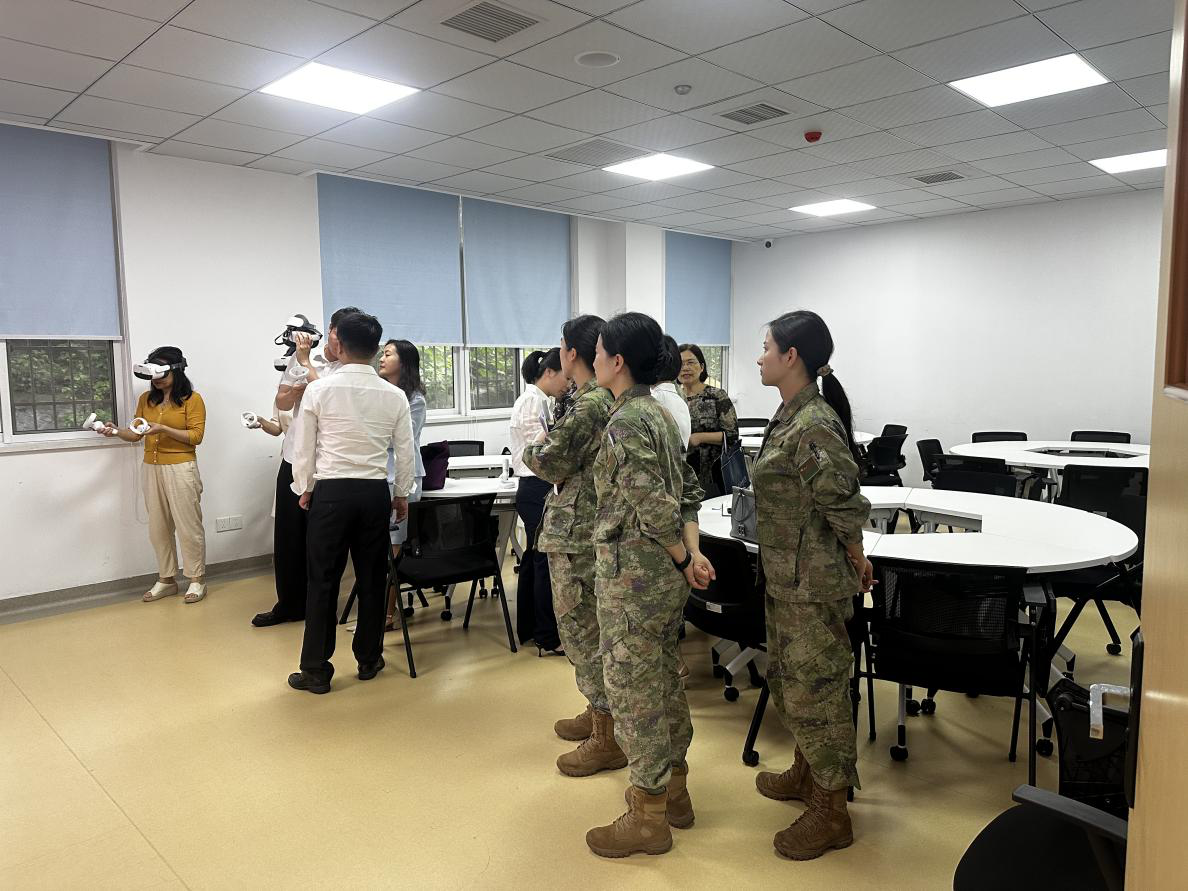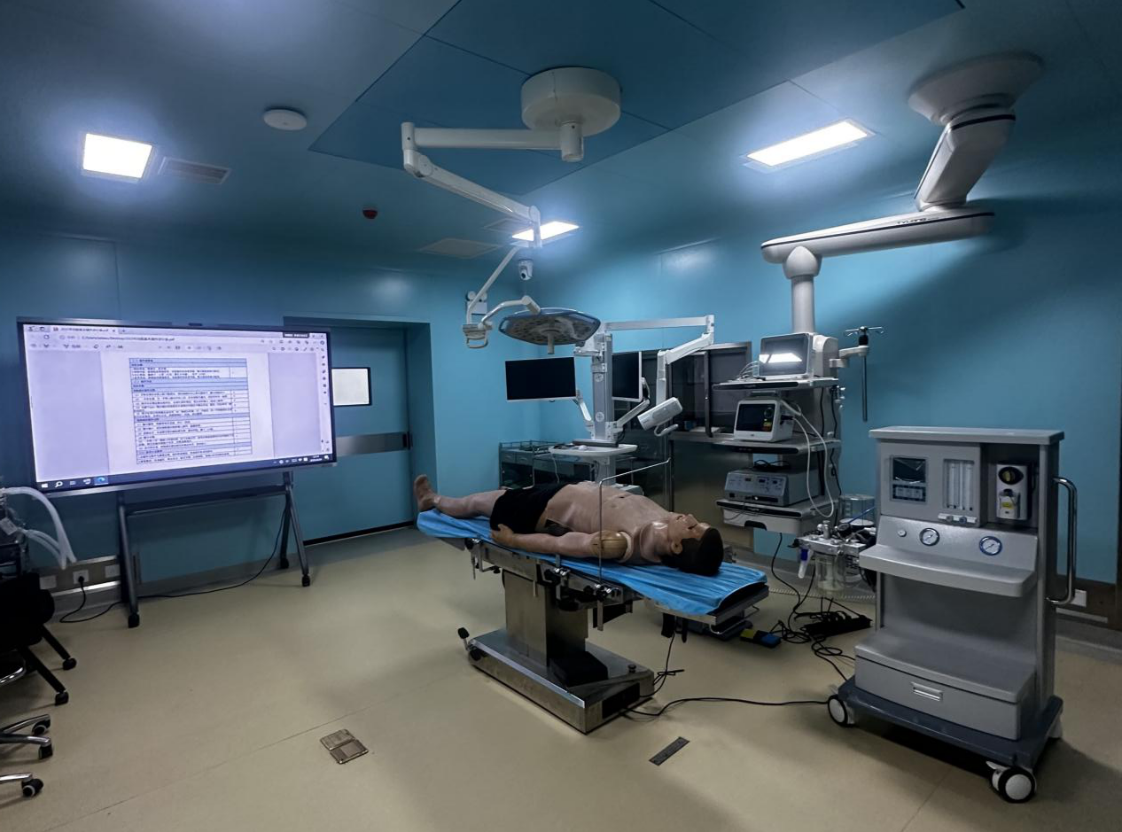接下来刘文卓带领护理学院一行参观医学模拟中心,包括模拟ICU病房、模拟手术室、OSCE考站等,以及医院智能实践技能平台,包括3D可视化临床技能中心综合管理系统、OSCE考核管理系统和课程点播系统等。