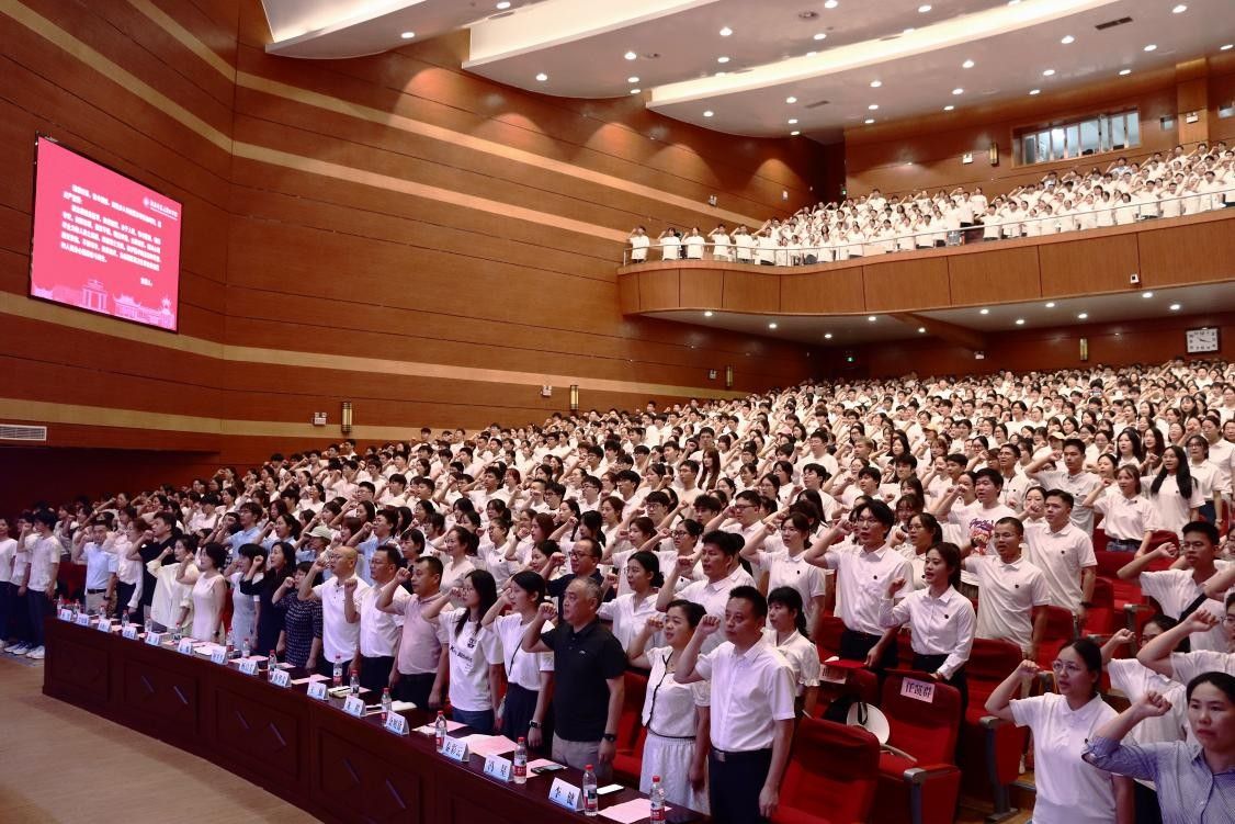 典礼上,全体新生在基础医学院田玫老师的带领下庄严宣誓,恪守医学生使命。与会领导为新生班导师颁发聘书。