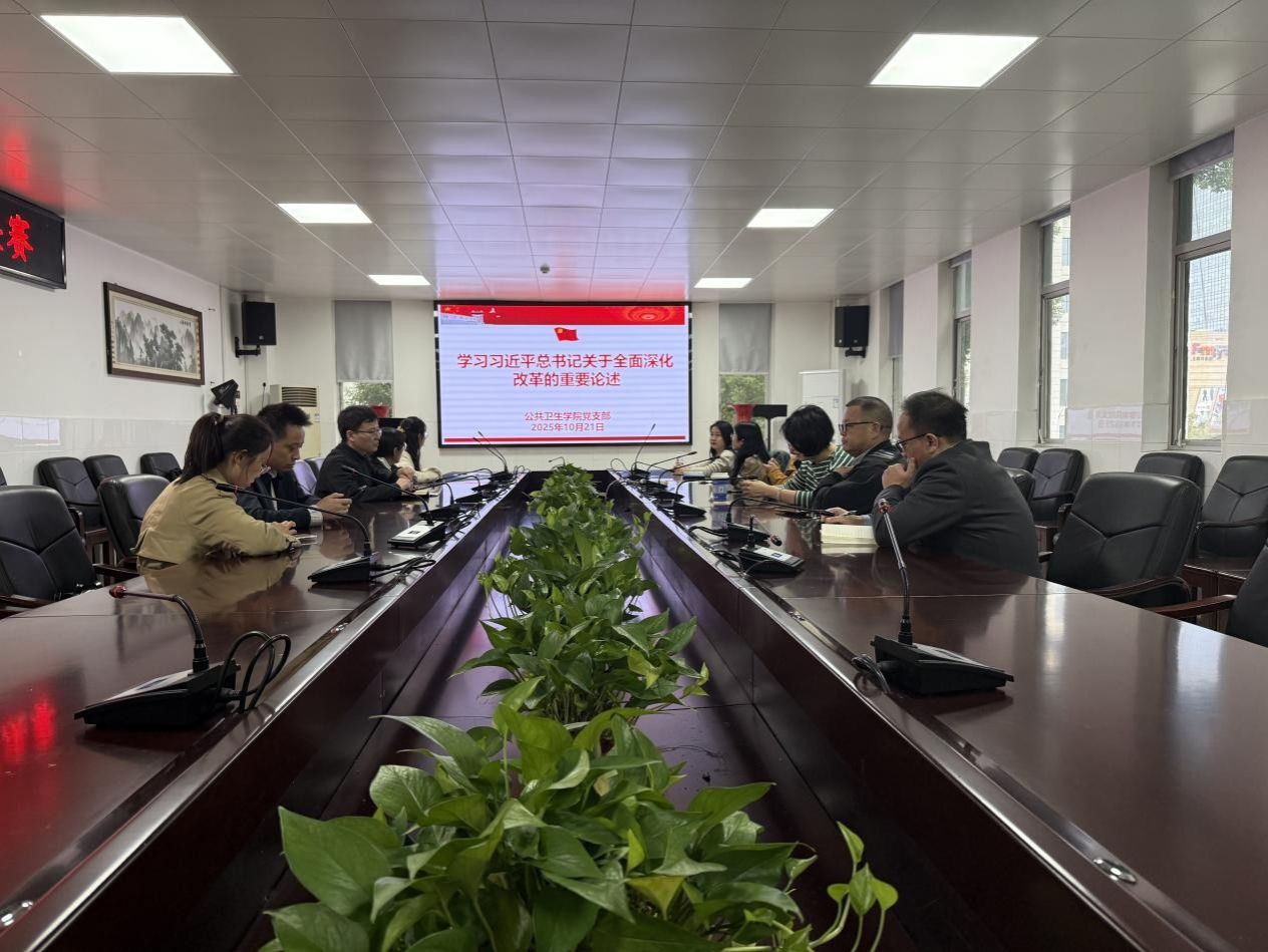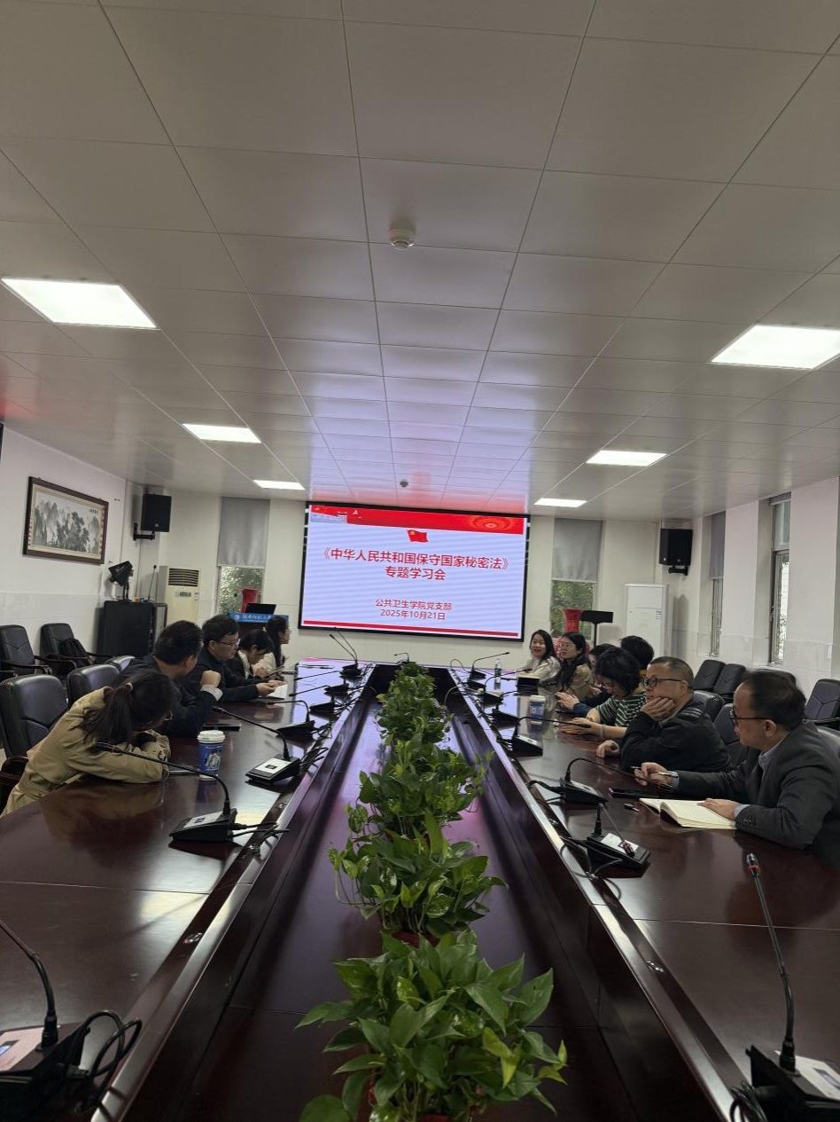 2025年10月21日,湖南师范大学公共卫生学院教工党支部在仁医楼207会议室组织召开了党支部会议。会议旨在引导全体教工党员深入学习《习近平谈治国理政》第五卷夯实公共卫生学科根基、《中华人民共和国保守国家秘密法》、习近平总书记关于全面深化改革的重要论述的精神实质与核心要义,以期统一思想、凝聚共识,将思想伟力转化为推动学院高质量发展、服务“健康中国”建设的生动实践和战略部署。