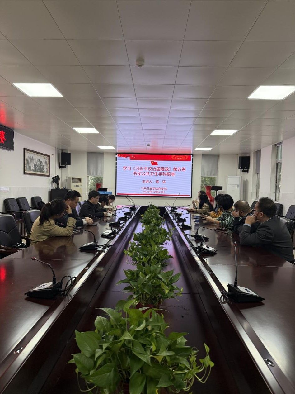 会议首先开展了“学习《习近平谈治国理政》第五卷夯实公共卫生学科根基”的党课活动,全体党支部老师在支部书记陈适书记带领下集中学习了《习近平谈治国理政》第五卷的相关重要篇目,并结合公共卫生学科发展讨论了学习体会。与会党员深刻认识到,这部重要著作是习近平新时代中国特色社会主义思想的最新成果,集中展现了马克思主义中国化时代化的最新飞跃,为我们在新征程上奋勇前进提供了思想指引和行动指南。支部党员们结合公共卫生学科特点与学院发展实际,深入研讨如何将人民健康放在优先发展的战略地位,将保障人民健康融入学科建设、人才培养、科学研究的全过程。通过学习,大家进一步明确了新时代公共卫生工作者的历史责任与时代使命。一致认为,必须坚持党的全面领导,坚守为党育人、为国育才的初心,努力培养德才兼备的高素质公共卫生人才,为维护国家公共卫生安全提供坚实的人才支撑。
