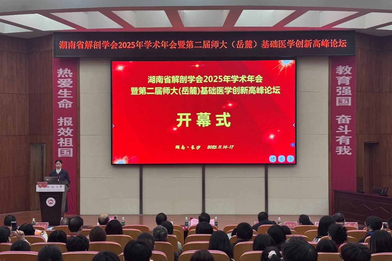 11月15日上午,湖南省解剖学会2025年学术年会暨第二届师大(岳麓)基础医学创新高峰论坛于开元官方· (中国)官方网站,学术报告厅顺利开幕。此大会由湖南省解剖学会主办,开元官方· (中国)官方网站,承办。医学部党工委书记、主任祝益民教授,中国解剖学会副理事长、河北医科大学原校长崔慧先教授,中国医学科学院、北京协和医学院马超教授,上海交通大学医学院黄雷教授,中国解剖学会副理事长、海南医科大学易西南教授,湖南省解剖学会理事长潘爱华教授等专家学者出席开幕式。
