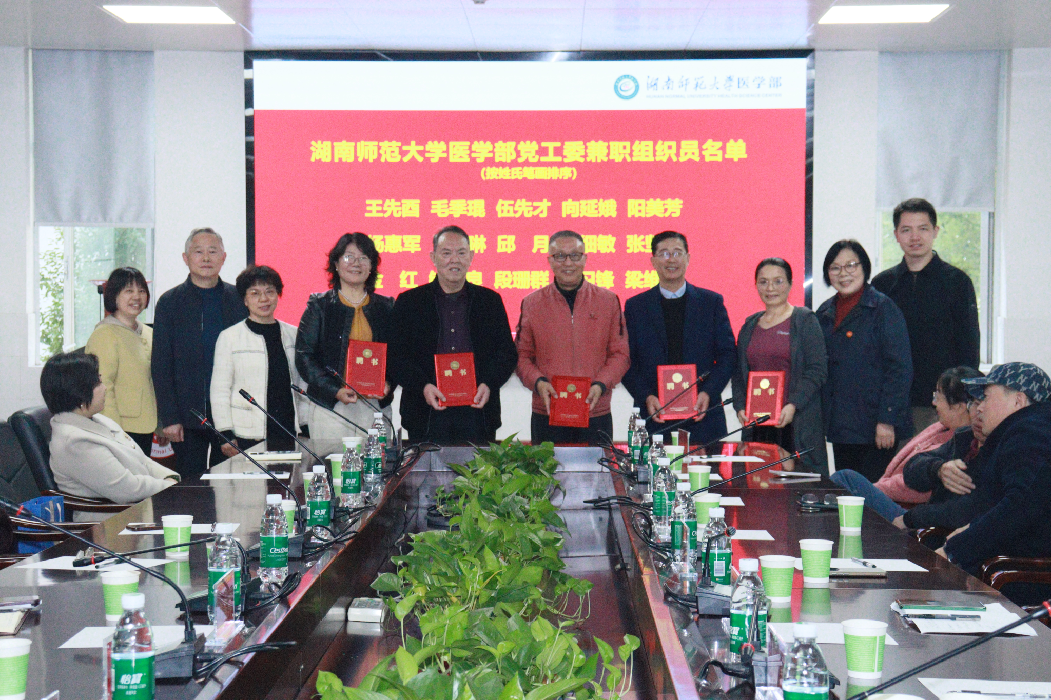 11月24日,医学部举行党工委兼职组织员聘任仪式暨关心下一代工作委员会工作会议。湖南师范大学关工委常务副主任徐书华、副主任李学荣,离退休工作处副处长方俊雄,医学部党工委副书记鄢朝晖、党工委办公室主任杨洁芳,医学部关工委委员等出席会议。会议由医学部学生工作办公室主任郭铭伟主持。