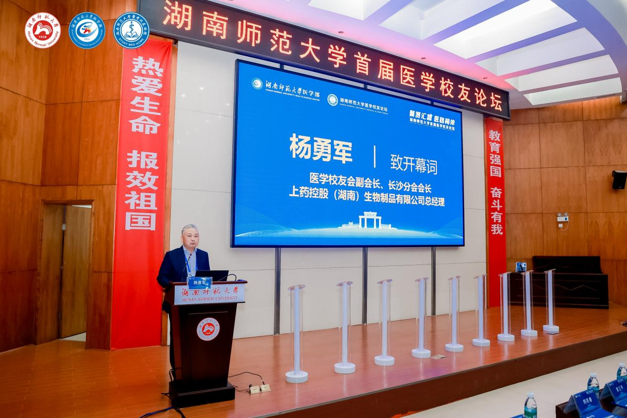 开幕式上,湖南师范大学医学校友会副会长、长沙分会会长杨勇军对校友们的归来表示热烈欢迎。他倡议全体校友携手,推动校友智慧与政府决策的“智策融合”、产业资源与临床需求的“供需融合”、校友经济与地方发展的“成长融合”,共同为“健康中国”“健康湖南”建设添砖加瓦。