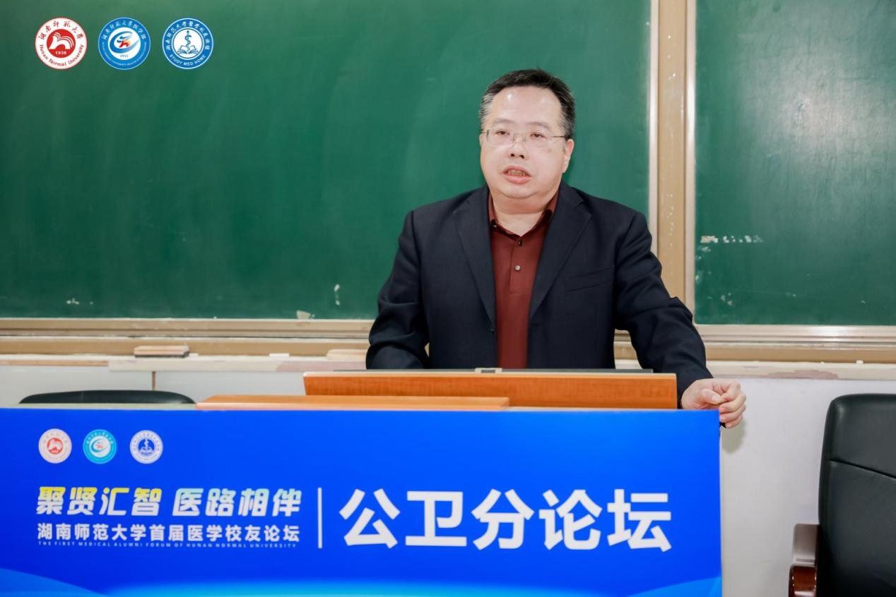 梁维君作开场致辞。他表示,近年来学校“医教协同”纵深推进,公共卫生学院已成为中部地区高层次应用型预防医学人才的重要培养基地。他期待学院以校友论坛为纽带,把课堂里的学问与一线防控经验深度融合,打造‘师大公卫’新名片。
