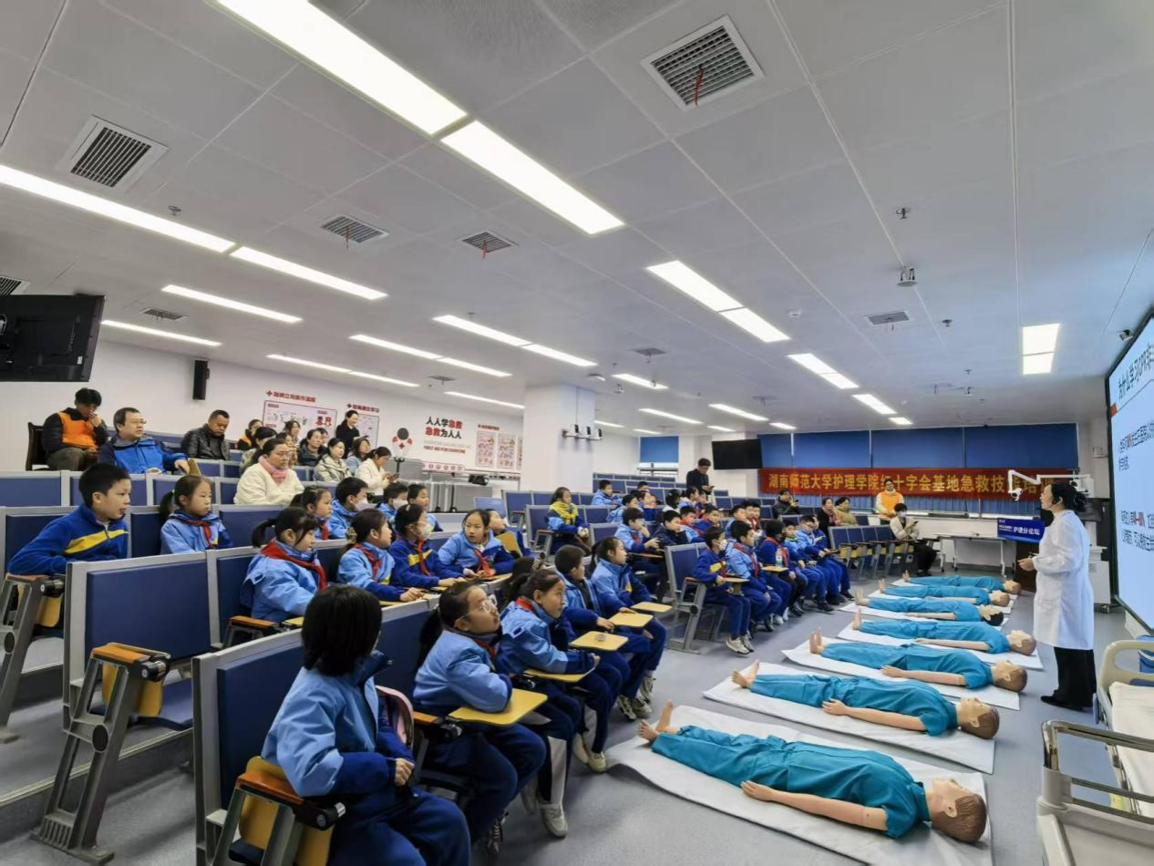 2025年12月13日上午九点,护理学院暨湖南省红十字会基地面向湖南师范大学附属小学,在医学部综合楼312教室成功举办了一场别具特色的小学生急救技能培训活动。来自师大附小2205班的同学们及班主任老师、部分家长走进基地,接受急救技能系统培训。