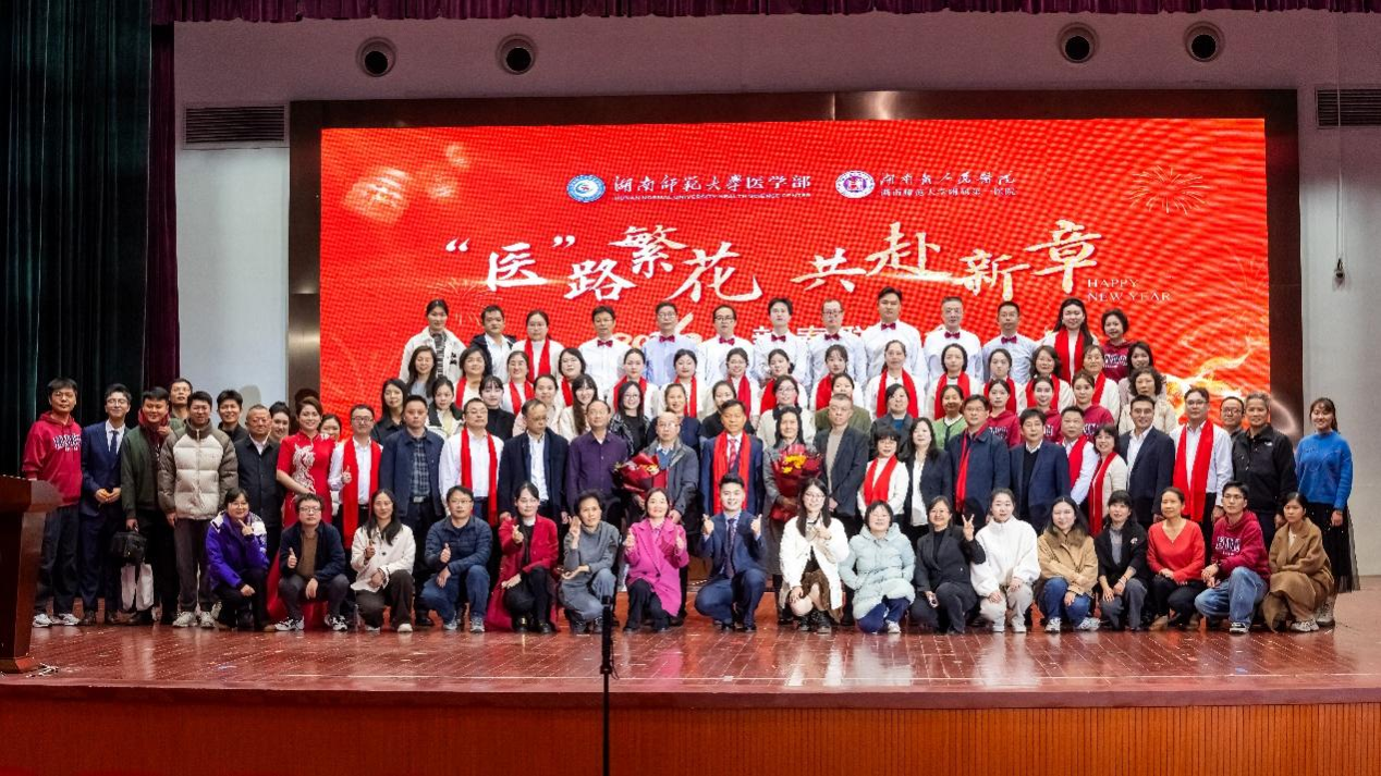 湖南省人民医院(湖南师范大学第一附属医院)党委书记赵卫华在致辞中提出,过去一年,在学校及医学部的坚强领导下,坚持稳中求进、提质增效,同时通过系列举措切实减轻了群众就医负担,门诊与住院患者自付费用有效降低,体现技术价值的医疗服务占比进一步提升,医院资产负债率成功控制在35%以下,实现了运行效率与公益性的双提升,整体运营态势为近年来最佳。他表示,这些成绩的取得,离不开学校党委和医学部的精准指导与大力支持。未来,医院将继续紧密依托大学平台,深化医教研协同,与医学部及各兄弟医院一道,共同弘扬和建设富有师大特色的医学家文化,为学校医学事业的高质量发展贡献力量。