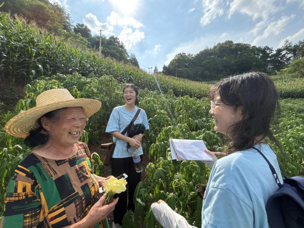 在虎形村妇联主陈晓霞的带领下,队员们上门入户,与黄蜀葵种植户进行面对面访谈,并进行问卷调查,为后续调研报告提供了可靠资料。据了解,黄蜀葵种植户大多为留守在家的老人,去年在桑植县金土地农业开发有限公司董事长双贵明的号召下开始种植黄蜀葵。黄蜀葵作为一种经济效益较高的农作物,改变了老人的经济出路以传统农业为主,但创收不高的局面。同时,黄蜀葵的种植过程也提升了老人们的自我价值认同感,减少了空巢老人抑郁的可能性。