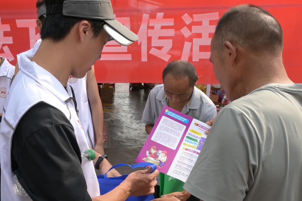7月9日上午,医学部“逐梦青春”三下乡队伍受邀前往吉信镇集市,与吉信镇政府联合司法携手开展“安全普法”专项行动。