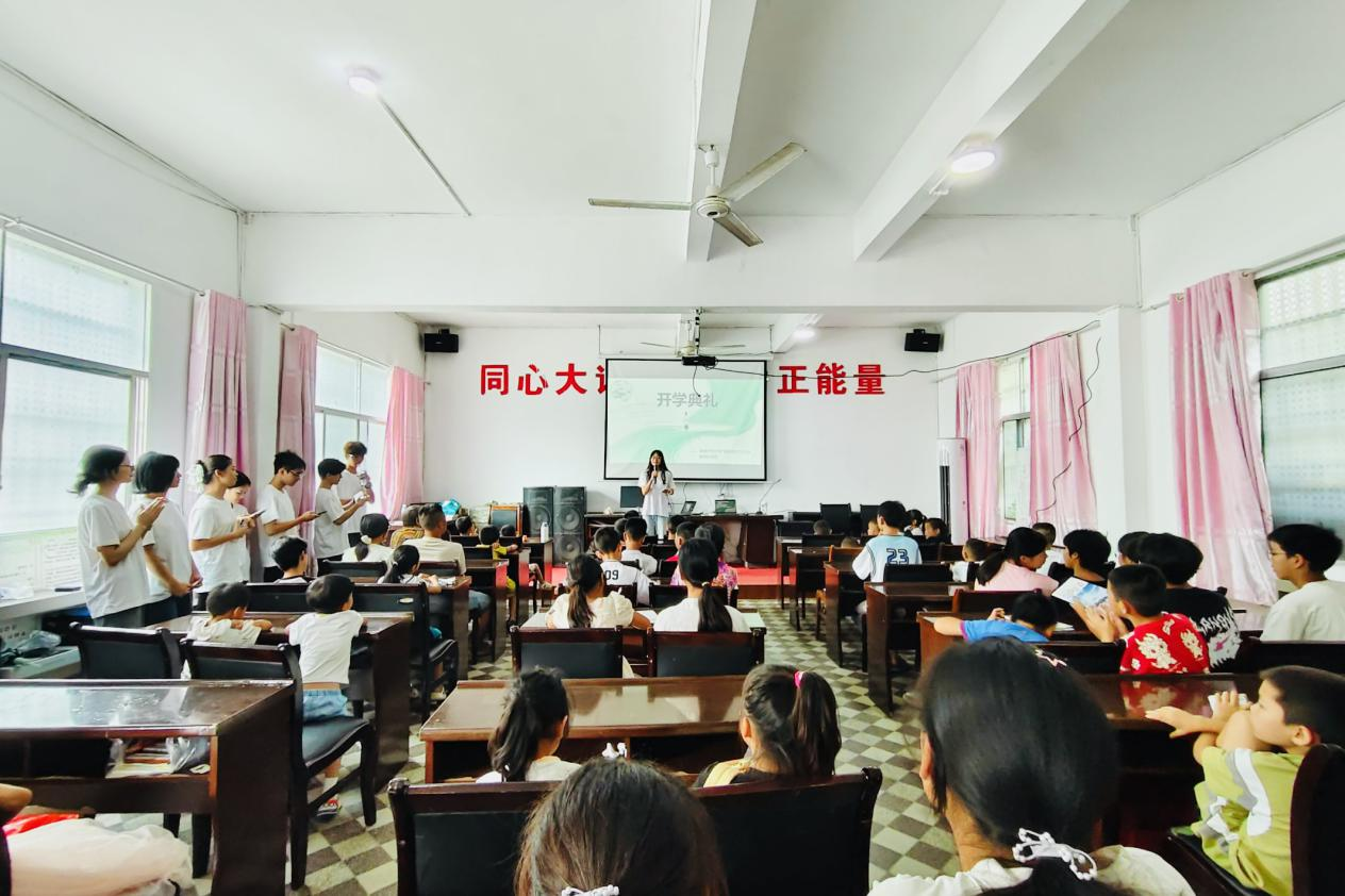 典礼伊始,向爱玉针对此次支教活动进行致辞。她鼓励学生们配合实践团的工作,为实践团的支教工作提供支持,并多次强调成员和学生的人身安全问题。随后,支教组组长发表讲话。她指出,支教绝非单向的知识传递,其核心在于师生间的“教学相长”。在班主任致辞环节,班主任代表围绕安全这一主题进行发言。她指出学生的心理安全尤为重要,同时,也表示会时刻关注学生的心理健康状况并及时给予帮助。在演出环节,实践团成员和学生一起合唱,现场氛围热闹和谐。