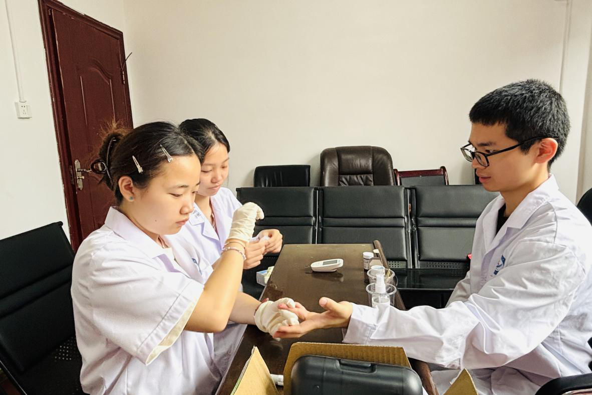 为保障健康义诊活动血糖与血压测量工作的高效推进,7月10日上午,医学部“湘医传方”暑期社会实践团在张家界桑植县李家庄村村部开展了健康义诊培训工作。医学部红十字会健康咨询队队员信晓彤担任主讲人,所有成员参与了此次培训。