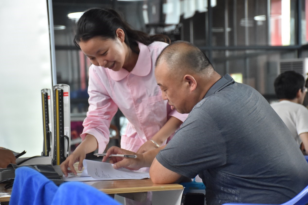 体验馆内,健康咨询组成员身穿白大褂或护士服为来往人民进行血压测量或推拿体验服务,一些爷爷奶奶欣然前往咨询处进行血压测量,接受学生们针对个人血压情况提出的相关健康生活建议,而泼水节玩耍后劳累的群众来到推拿体验处体验推拿,推拿完后都对成员们表示感谢。支教组的成员不忘自己的职责,乘着泼水节人流量大,手拿问卷开始调研工作,与过往的民众交流,了解相关本组调研主题的情况。