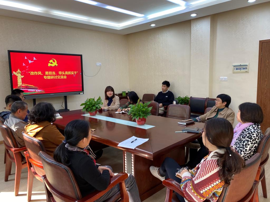 11月12日下午,行政党支部在三楼会议室召开党员大会,并开展“改作风,勇担当,带头真抓实干”专题研讨交流会,联系副院长邓文艳参加会议。