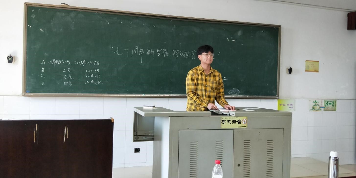 活动结束后,班级团支书和获奖同学合影留念。此次活动的举行,不仅让同学们回顾了新中国七十年发展的辉煌历史,也了解到了曾经峥嵘岁月的困难与艰辛。同时也让同学们深知,处在平和安乐的美好时代,更应该牢记历史使命,肩负实现中华民族伟大复兴的神圣使命,不断提升自我能力,健全人格,为社会进步奉献出自己的一份力量。
